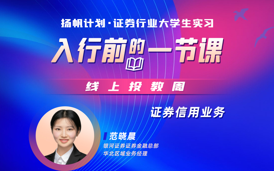 课程讲师:范晓晨,银河证券证券金融总部华北区域业务