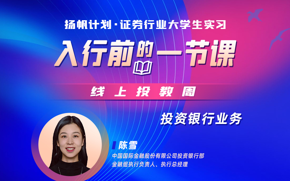 课程讲师:陈雪,中金公司投行部金融组执行负责人