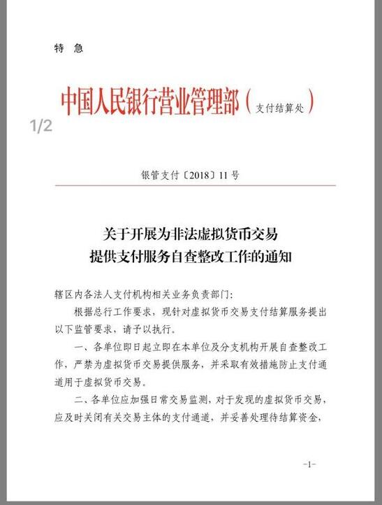 通知中还显示,对于发现的虚拟货币交易,应及时关闭有关交易主体的支付通道,并妥善处理待结算资金。