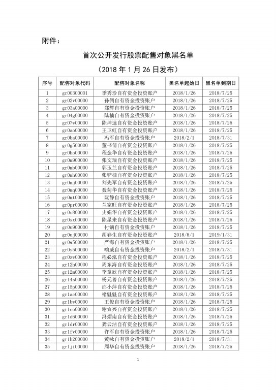 列入黑名单时限自本公告发布之日起计算。因2016年发生违规情形已被列入黑名单且尚未到期的配售对象,其时限自原黑名单到期日的次日起计算。对于因2017年1-2月发生违规行为已被列入黑名单、3-4月再次发生违规行为需要延长黑名单时长的配售对象,其时限自原公告公布的日期起计算。