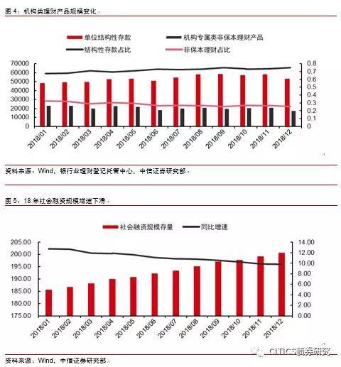 保本理财产品规模可从结构性存款规模大致估计。近日,银保监会披露18年末保本理财产品余额约10万亿元,相较17年末(7.37万亿元)增长了35.7%。而根据央行数据,18年末全国中资银行结构性存款规模为9.62万亿元,相较17年末(6.95万亿元)增长了38.4%。两者数据主要差异在于外资保本理财产品余额不纳入央行结构性存款统计。《中国银行业理财市场报告(2017年)》中披露外资银行理财产品年末规模为0.37万亿元,其中保本理财产品占比高达72.8%。可推算出外资银行保本理财产品规模17年末为0.27万亿元,若按35.7%的增长率估计,18年末可达0.37万亿元,这解释了银保监会保本理财数据与央行结构性存款数据的大部分差异。此外,两者数据差异也与部分保本理财产品计入同业存放款项有关。