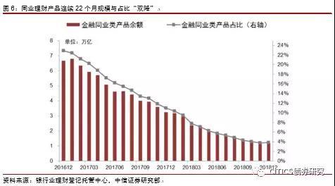 同业理财产品(包括保本型与非保本型)自17年高点以来,规模与占比持续22个月“双降”。18年底全市场同业理财产品规模为1.22万亿,同比下降2.04万亿,降幅62.57%,在全部理财产品中仅占3.8%,说明金融去杠杆成效显著,“资金空转”现象明显减少,未来继续调整压力不大。