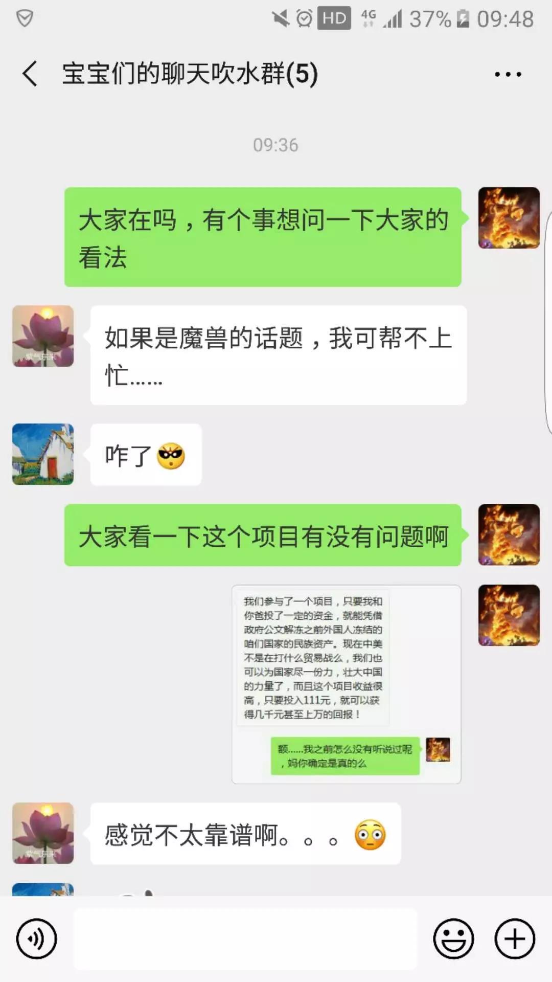 3、在民族大业的一个微信群里,传销人员声称,只要投入111元,就可以获得400万的回报。这个高额的回报让无数人心动。