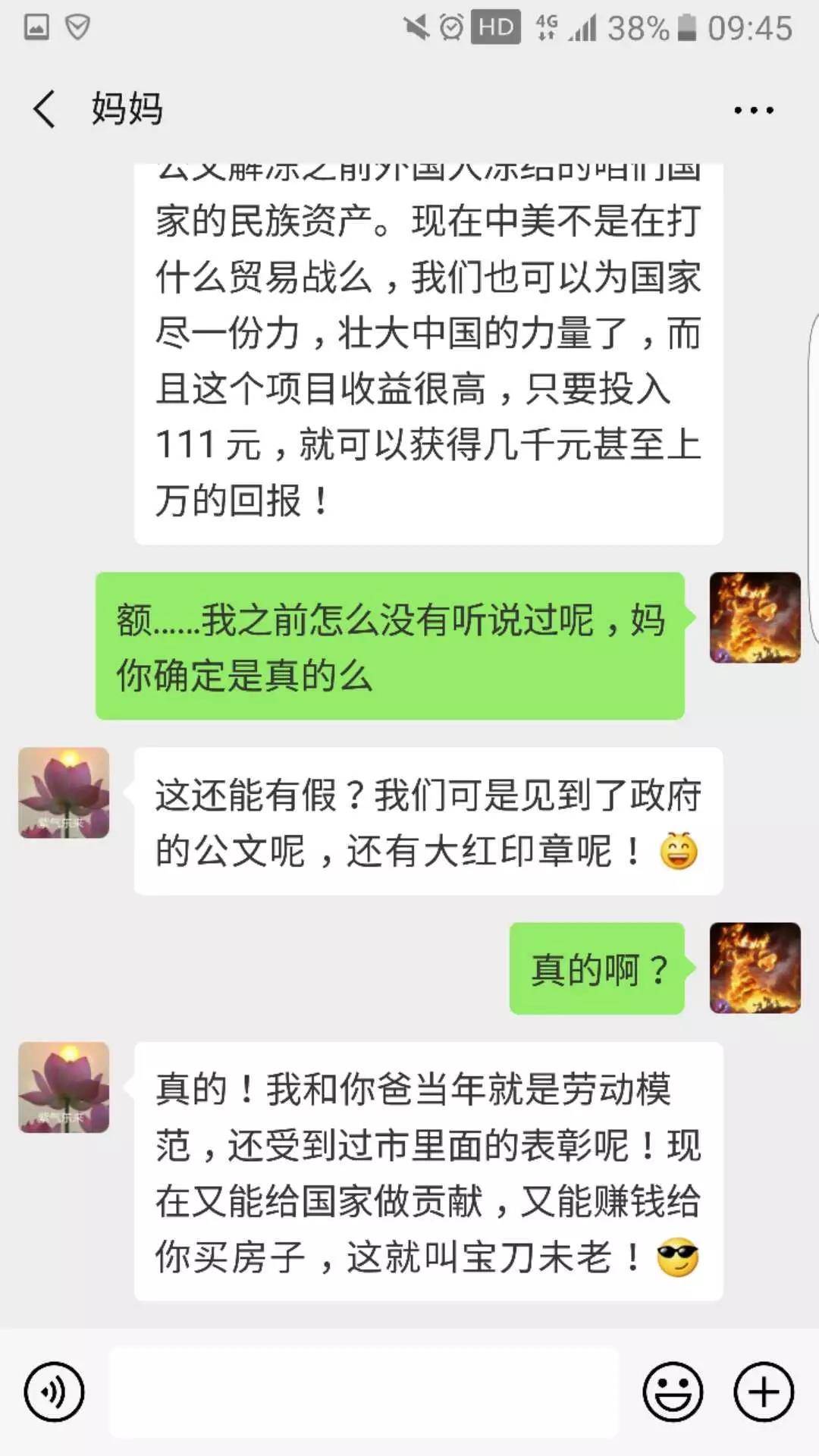 这起诈骗案还有一个特点,就是利用了父母长辈的爱国心理。我们的父母是从国家比较困难的时候过来的,也是在改革开放时期拼搏过的,他们亲眼见证国家从贫穷走向富强。这种情况下,他们有着非常强烈的爱国心和对社会的责任感,两者结合起来,使得他们对这类事情非常热衷,也容易获得满足感。犯罪分子运用这种手段,宣称参与者可以为民族做出非常大的贡献,很容易满足父母长辈的心理,也有很大的迷惑性。