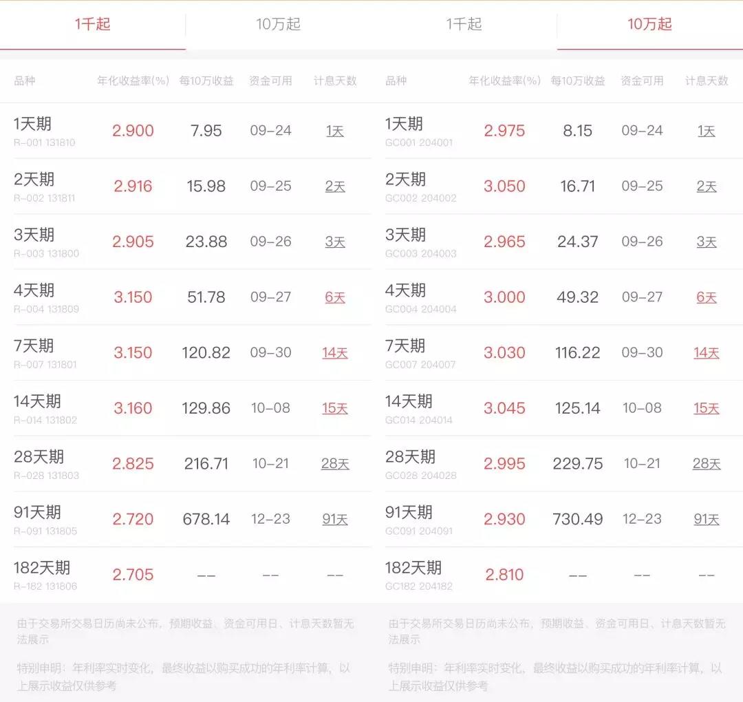 国债逆回购属于一种风险极低的投资品种,根据交易所不同,国债逆回购分为深交所的国债逆回购(一千起)和上交所的国债逆回购(十万起)。通常情况下,每个交易日都可以将闲置资金做国债逆回购,享受隔夜收益。值得关注的是,到了月底,季度底,临近节假日的时候,国债逆回购收益都会变高。资金不闲置,非交易时间还能享受收益,可以说是非常给力的产品了。
