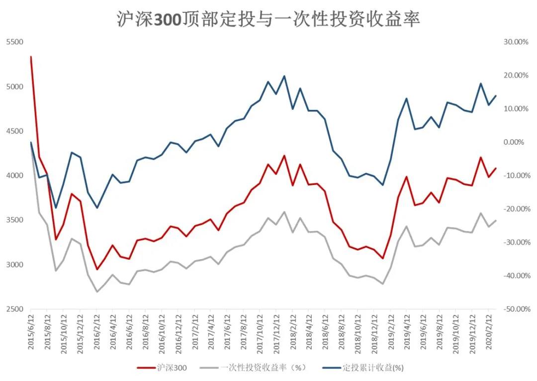 以沪深300这个宽基指数为例,即便是在市场顶部进场投资,基金定投相较于一次性投资,可以带来的收益是明显的。