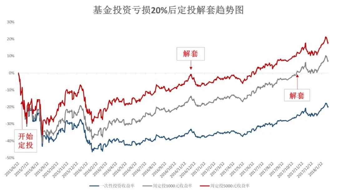 如果我们是已经身在市场中的投资者,面对下跌和震荡的市场,一次性投资会让自己陷入被动,只能被动等待市场上涨来慢慢收回本金。但是通过基金定投这样的投资方式,主动出击,会让我们在低点获得足够的份额摊薄成本,让解套的时间提前。