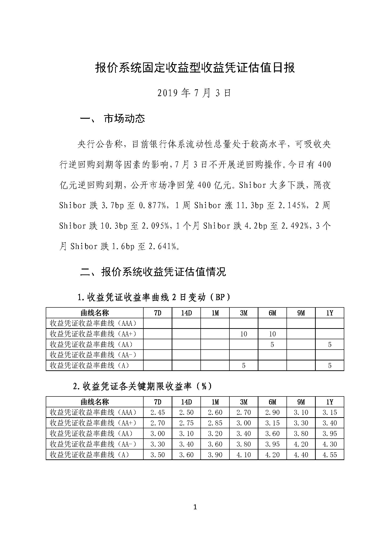 报价系统固定收益型收益凭证估值日报(2019 年 7 月 3 日)