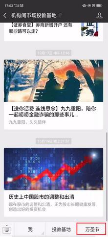 进入“机构间市场投教基地”公众号主页,点击右下角“万圣节”按钮打开“万圣节抢糖果”参与活动。
