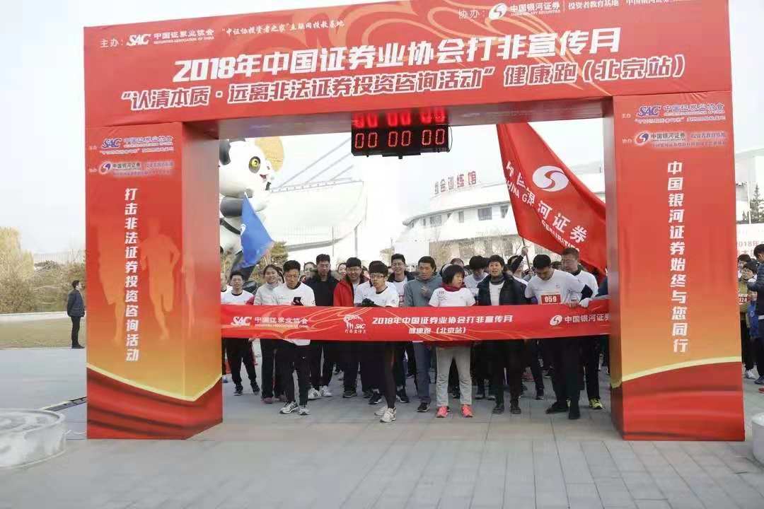 12月1日,中国证券业协会在京举行了2018年“打击非法证券活动宣传月”启动仪式,并开展打非健康跑北京站活动。中国证监会打击非法证券期货活动局巡视员刘云峰、中国证券业协会副会长孟宥慈、中国证监会投资者保护局副局长黄明、中国证监会稽查局线索一处处长孙凌、中国银河证券副总裁罗黎明、腾讯公司安全管理部高级总监朱殿君出席活动仪式。此次健康跑活动共有来自中国证监会、中证协、全国股转系统、中证机构间报价系统、机构间市场投资者教育基地、中国银河证券等40多个团队400多人参加。