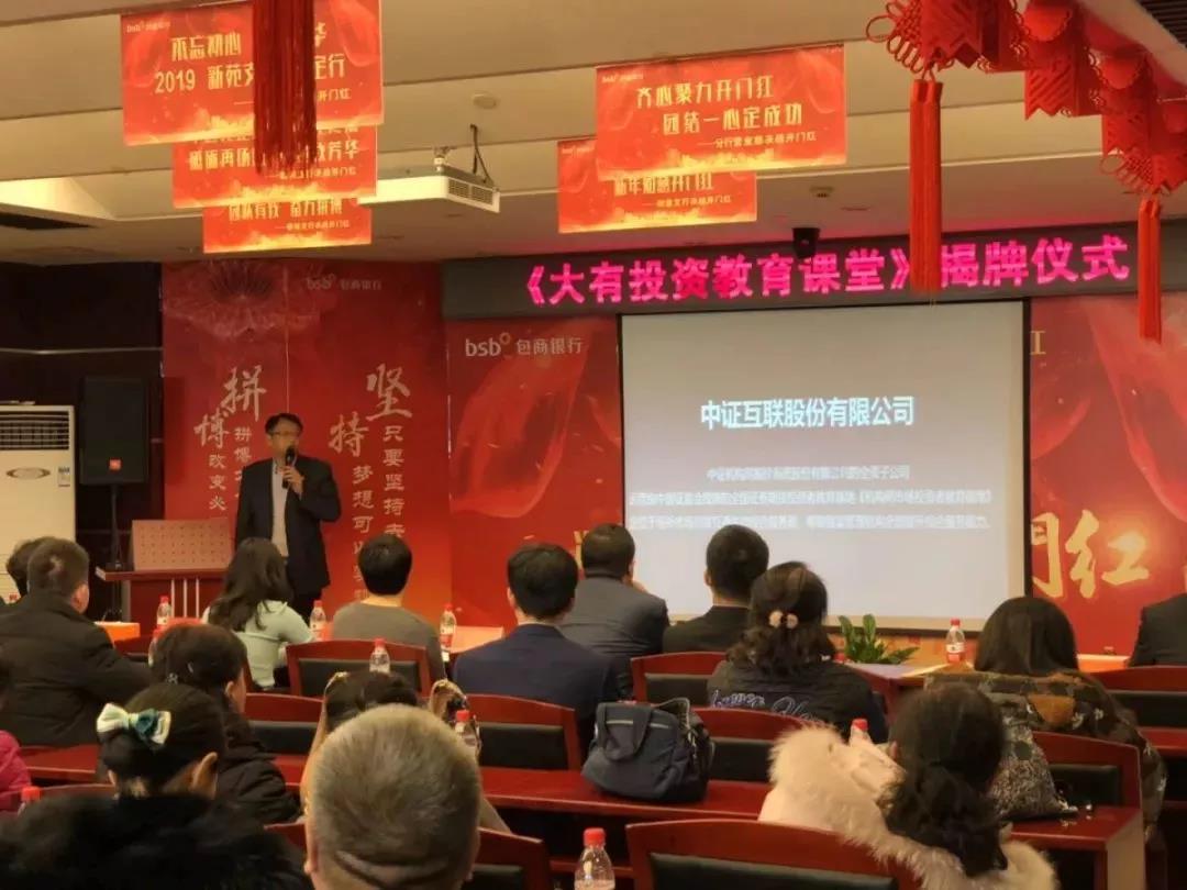 2019年1月21日,机构间市场投教基地与包商银行合作的《大有投资教育课堂》专区在包商银行呼和浩特分行正式落地启动。